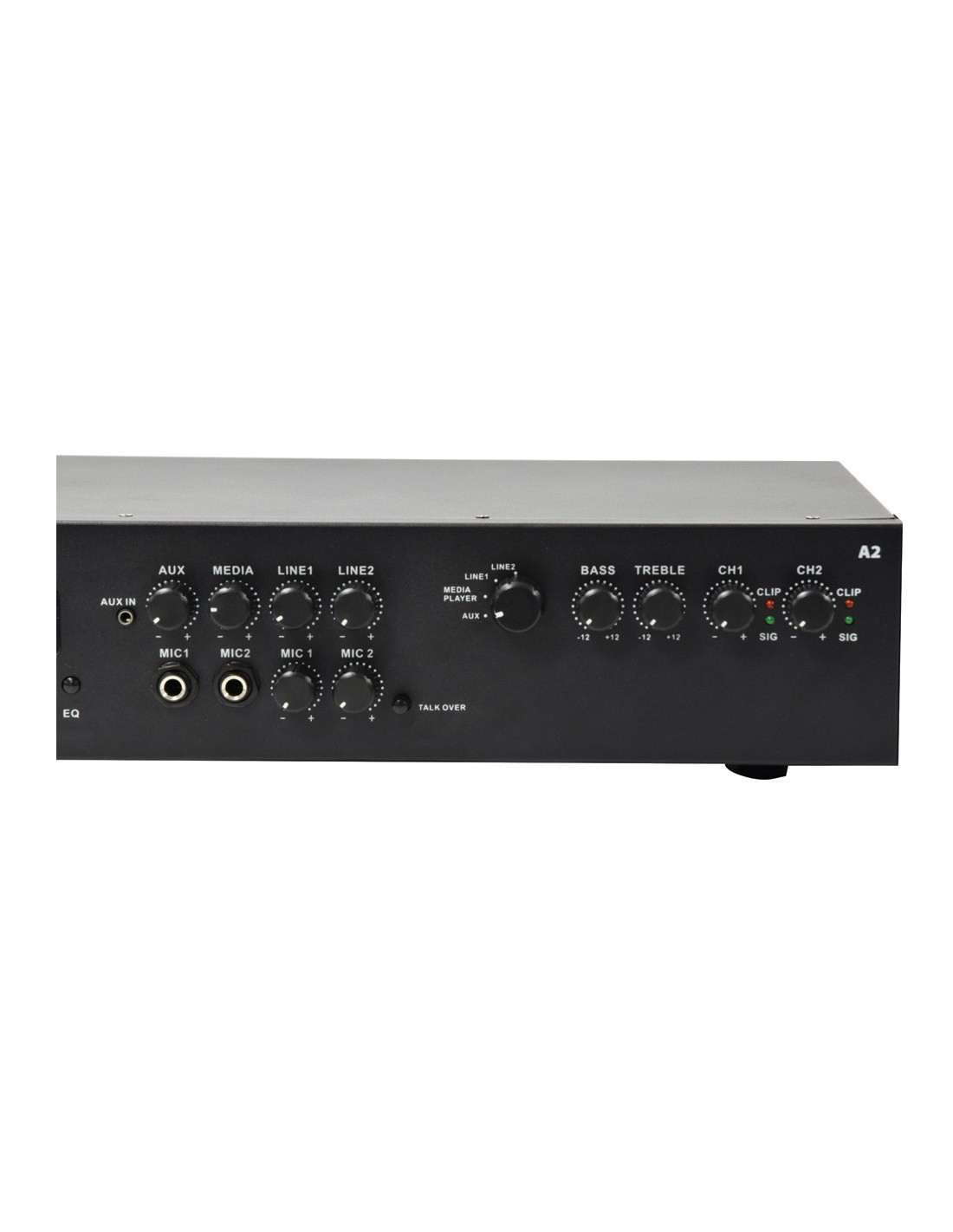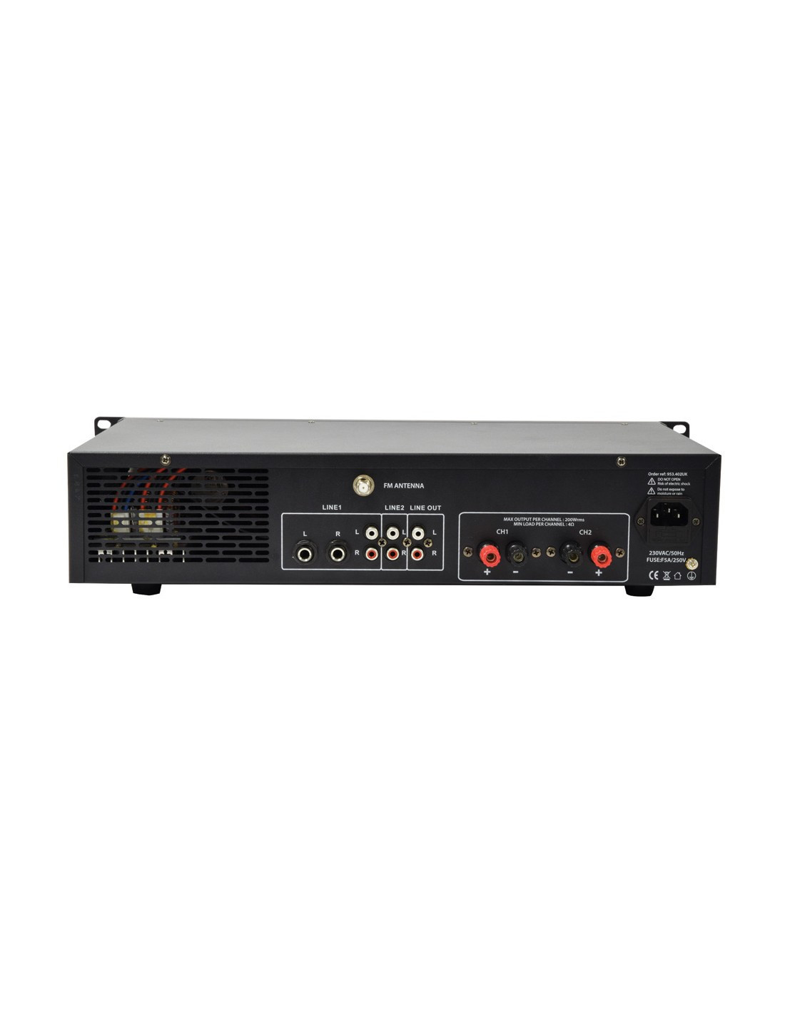 Amplificador clase D2 x 200W RMS @ 4 Ohms2 x 100W RMS @ 8 OhmsFormato Rack 19"Reproductor multimedia USB/SD/FMReceptor BluetoothControl remoto2 entradas de micrófonoMezclador...