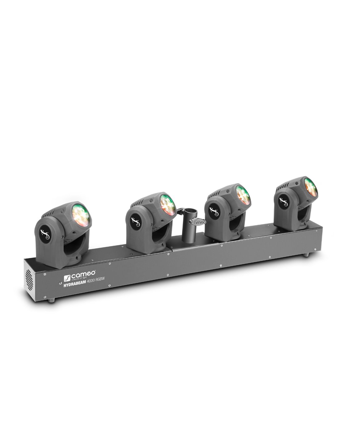 El Hydrabeam 4000 de Cameo combina 4 cabezas móviles, que se pueden controlar individualmente, con 540° de giro horizontal y 270° de giro vertical ultrarrápidos en un sistema de focos de 100 cm de longitud. Están equipadas con potentes LED RGBW de cuatro colores y 32 W que ofrecen mezclas de colores brillantes y homogéneas, y generan haces de luz muy nítidos y precisos con un ángulo de dispersión reducido de 2,5°.