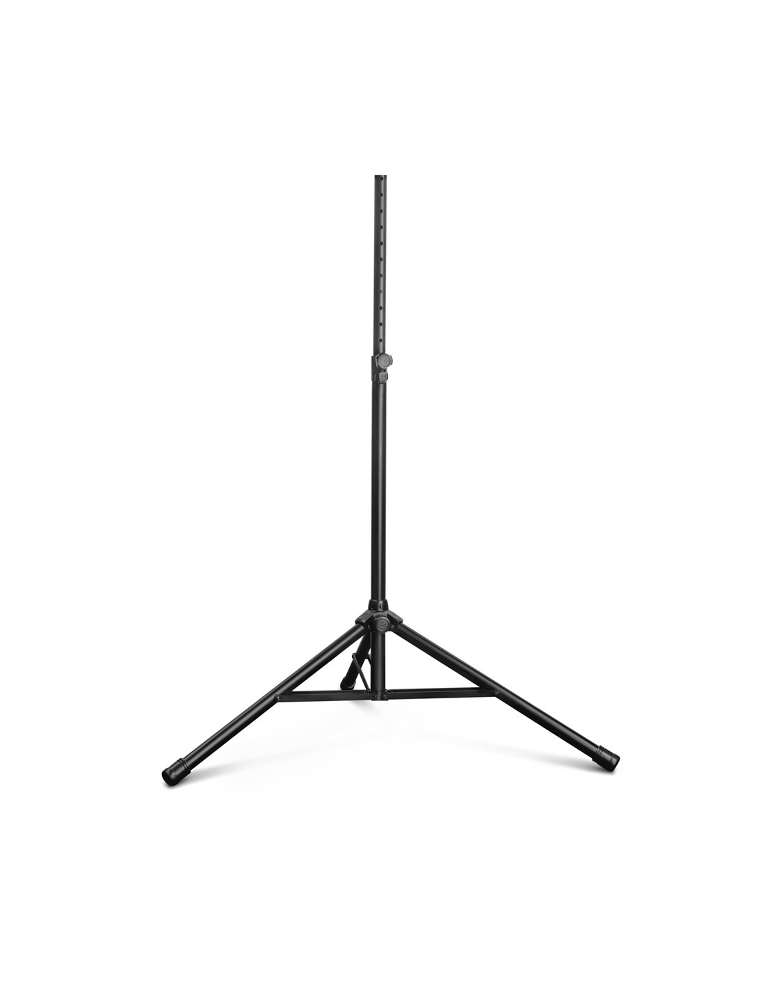 El intenso trabajo en las giras, donde el tiempo apremia, solo son capaces de soportarlo trabajadores fuertes y materiales robustos, como el soporte de altavoz de la serie Touring de Gravity. Extremadamente estable, con tres patas doblemente apuntaladas y un sistema de suspensión de aluminio fundido. Los tubos de acero son especialmente resistentes y soportan hasta 50 kg de carga. El montaje y desmontaje es increíblemente rápido y seguro gracias al pasador de seguridad LockPin®, que se enclava automáticamente. Cuando se bloquea el tubo de extensión de 35 mm, solo accionando la palanca de desbloqueo se puede volver a soltar el pasador. El soporte de altavoz se puede ajustar hasta 194 cm de altura. Para su uso en giras, los tornillos de ajuste con botones metálicos macizos e imperdibles son una ventaja inestimable.
