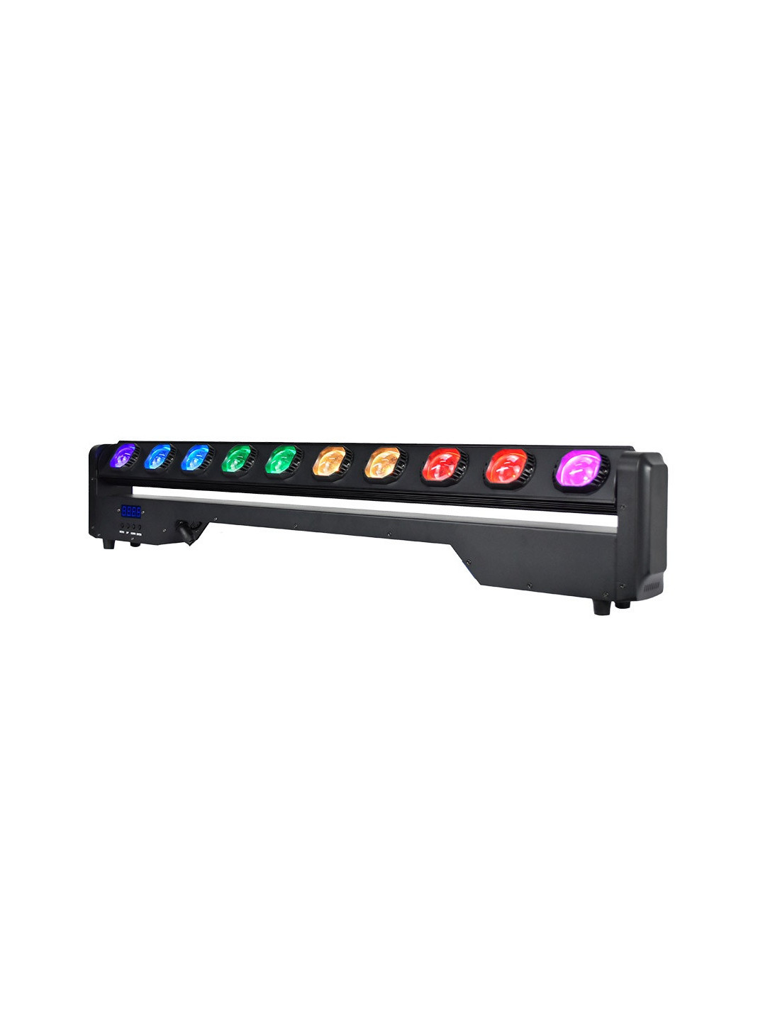 Potente barra LED profesional con 10 LEDs RGBW de 25W, rotación TILT motorizada de 220º y control DMX avanzado (hasta 43 canales)