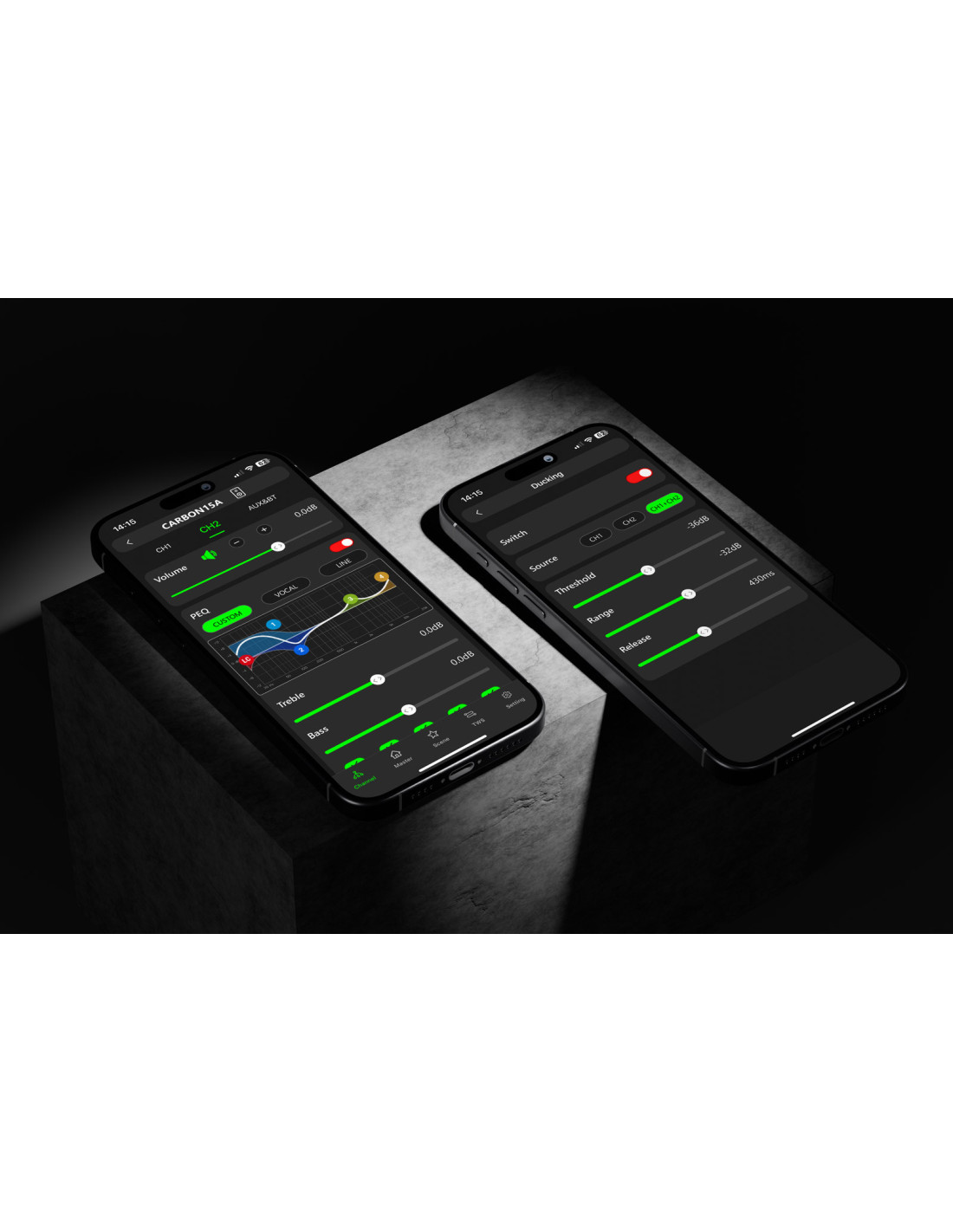 Sí, la aplicación es totalmente compatible. Detectará automáticamente tu altavoz CARBON15A y te permitirá ajustar todos los parámetros DSP desde tu teléfono o tablet.