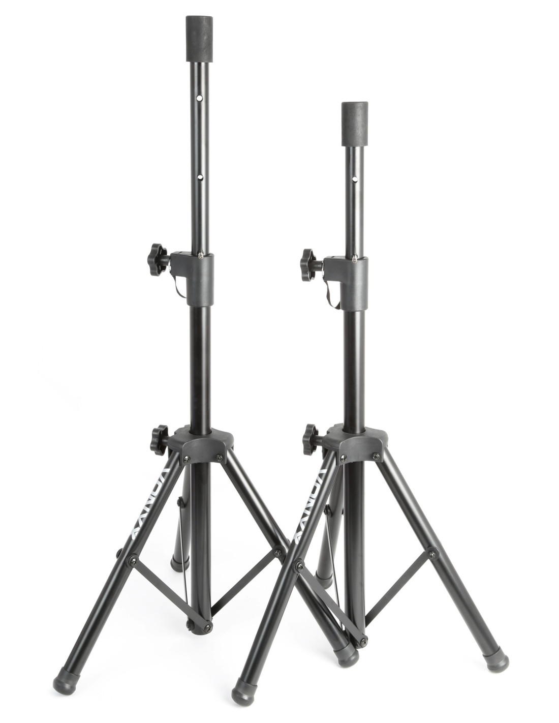 El LS02K es un kit con 2 soportes de altavoz trípode compactos con altura regulable y son compatibles con cualquier tipo de altavoces con un diámetro de agujero de unos 35 mm. Estos soportes telescópicos anodizados negros están hechos de acero para mayor durabilidad y estabilidad y el diseño plegable permite un fácil almacenamiento y transporte. Las patas del trípode y el poste se pueden bloquear con perillas giratorias fáciles de usar y cuentan con un pasador de seguridad adicional para evitar caídas repentinas de los altavoces. Los soportes pueden soportar equipos de hasta 20 kg de peso.