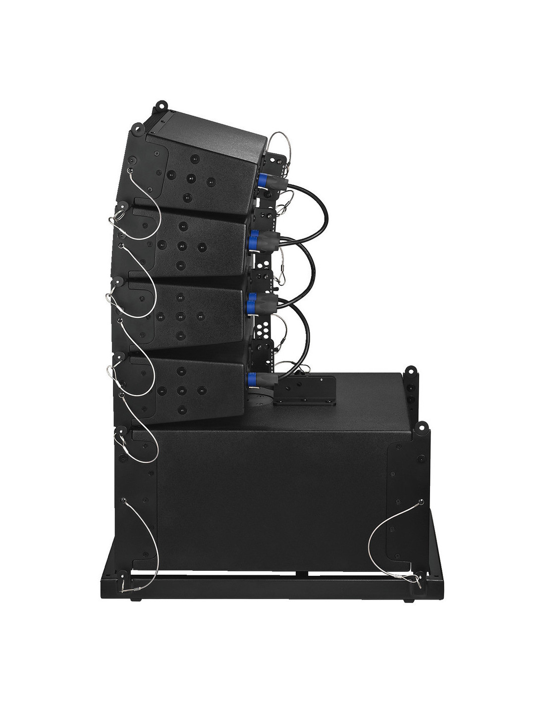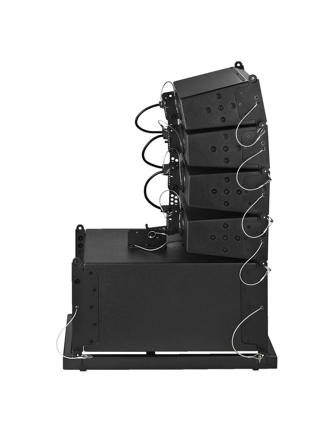 Un array compacto de gran potencia con cuatro altavoces de medios-agudos y un módulo de graves doble, cada sección con su propio amplificador de 350 W y software de control. La configuración del sistema se realiza mediante un ordenador, pero funciona de forma autónoma. Se entrega con un equipamiento amplio y variado para sistemas de montaje suspendido (Flyware). Los recintos de medios-agudos están equipados con dos altavoces de 10 cm (4") de gran rendimiento y un altavoz magnetostático para una reproducción perfecta y rica en detalles. Las características dinámicas son absolutamente convincentes y, además, la tonalidad del ajuste básico es muy agradable. A pesar de su tamaño compacto, el módulo de graves con dos altavoces de graves de 20 cm (8") ofrece una reproducción de graves sorprendentemente profunda y un nivel de estabilidad que solo se puede conseguir utilizando altavoces de graves especiales de gran potencia y una gran optimización del DSP.
