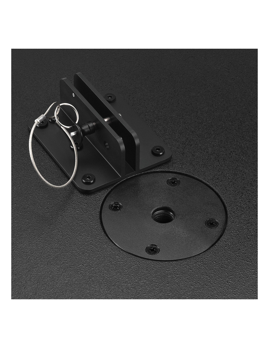 Además, los elementos array contienen una placa de conexión para un soporte, para montarlos en un pie. Con los accesorios LR-1000U y KM-21367, ambos disponibles opcionalmente, el sistema también permite una configuración de suelo. Para ello, el recinto subwoofer contiene una placa de montaje M20 oculta.