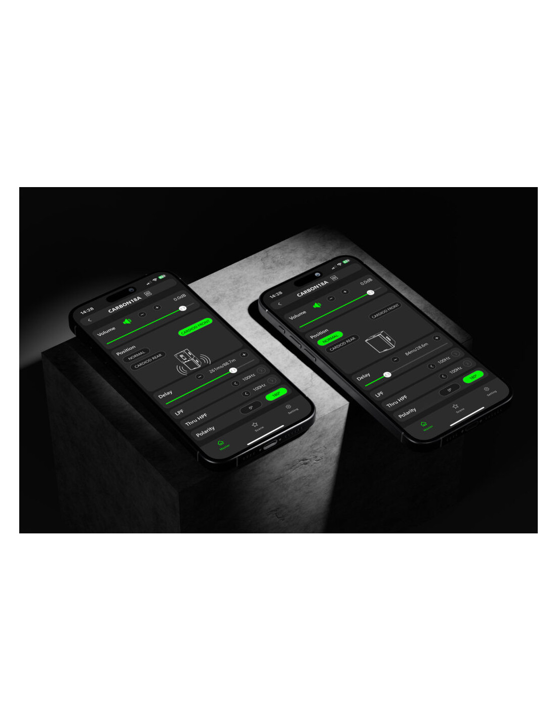- App CARBONcontrol (iOS/Android): Ajusta la ecualización, el delay para líneas de retardo o selecciona los presets (Live, DJ, Speech) paseando por la sala, sin tener que estar detrás del altavoz.