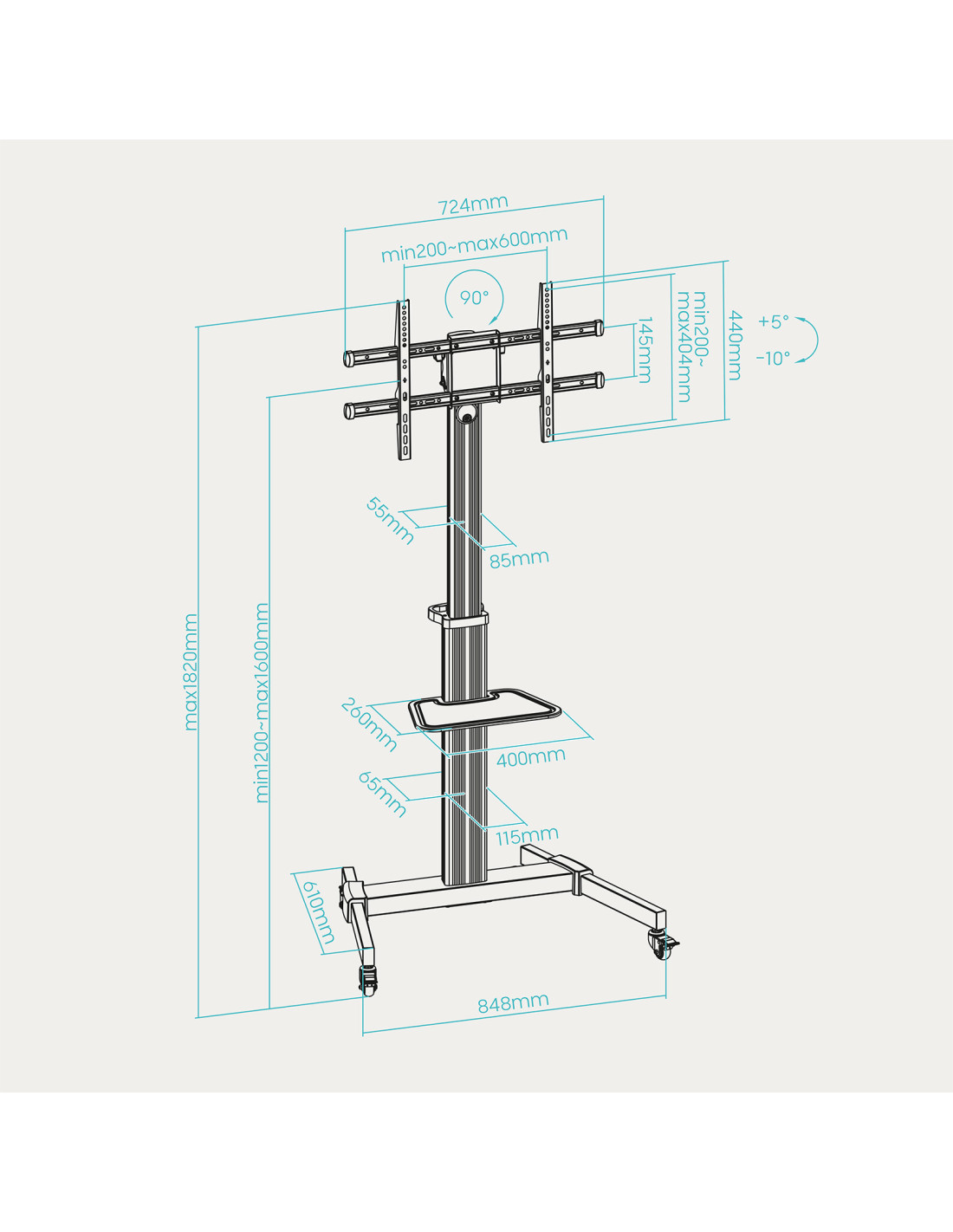 Tooq FS1886M-B Soporte suelo ruedas Hera 37-86