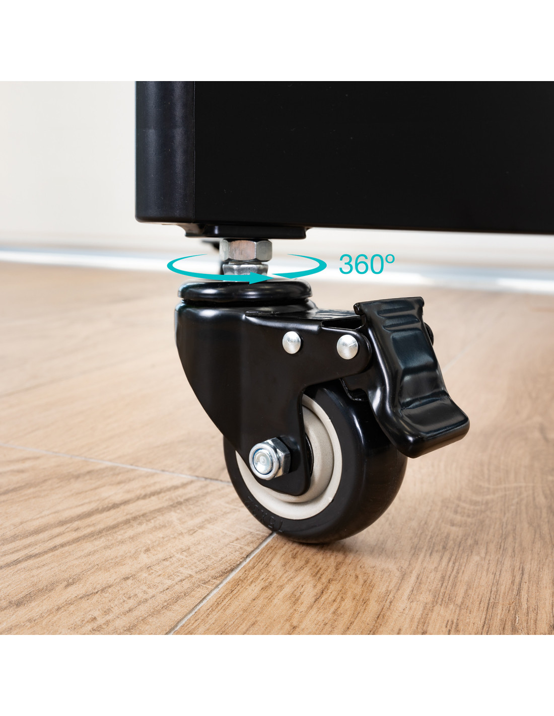 Hera, nuestro soporte con ruedas está diseñado para moverse con facilidad y convertir cualquier espacio en una sala audiovisual. Cuenta con una bandeja para instalar tu reproductor y con sistema de bloqueo de ruedas para evitar cualquier imprevisto.