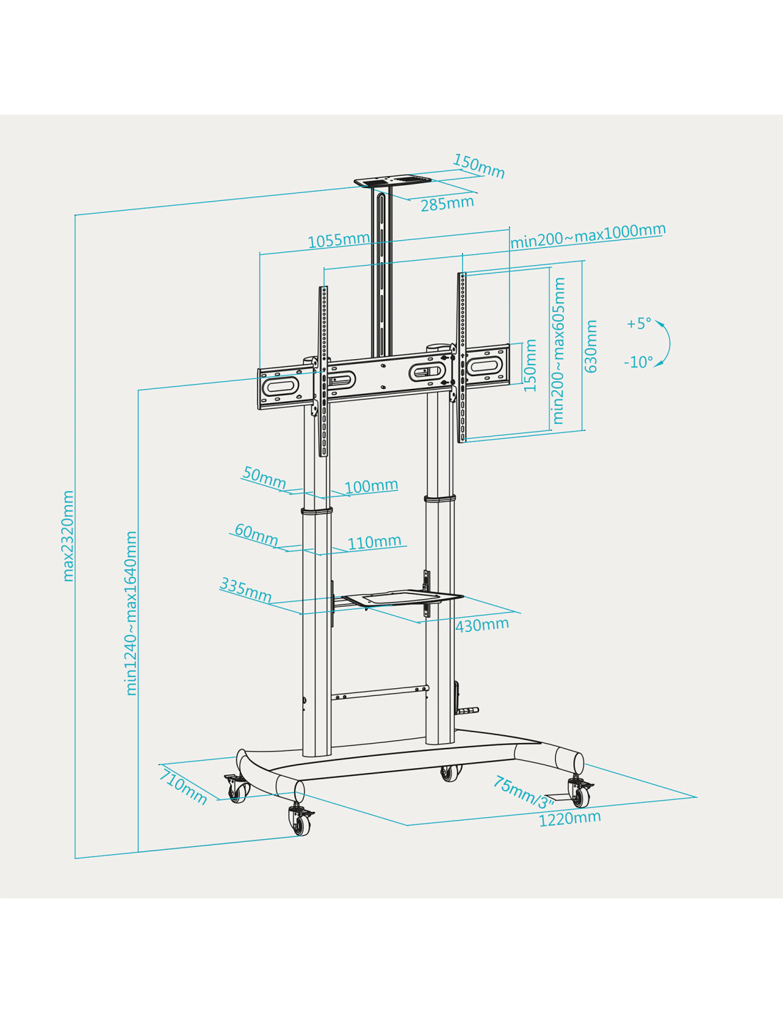 TooQ Ares FS20404HM-B Soporte de Suelo con Ruedas para Pantallas 60"-100" hasta 100 kg VESA 1000x600