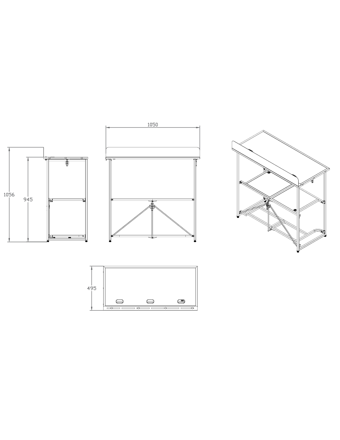 Dimensions: Folded 1070 x 510 x 150mm
